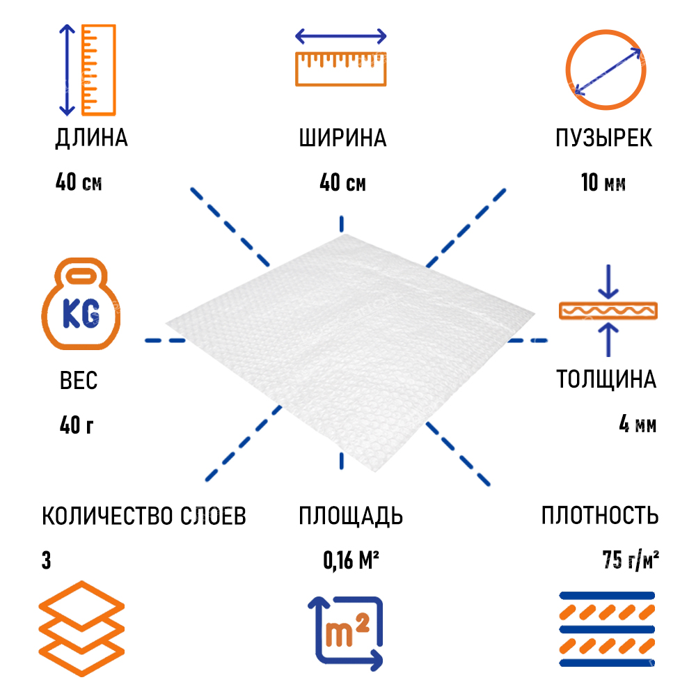 Лист воздушно пузырчатой пленки, 40х40 см У
