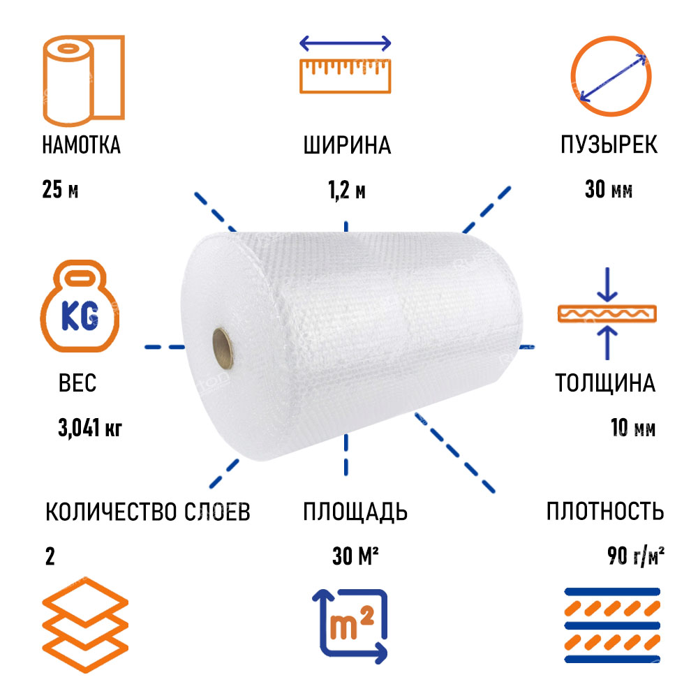 Пленка воздушно пузырчатая "Бигбабл" двухслойная, 1.2 х 25 м