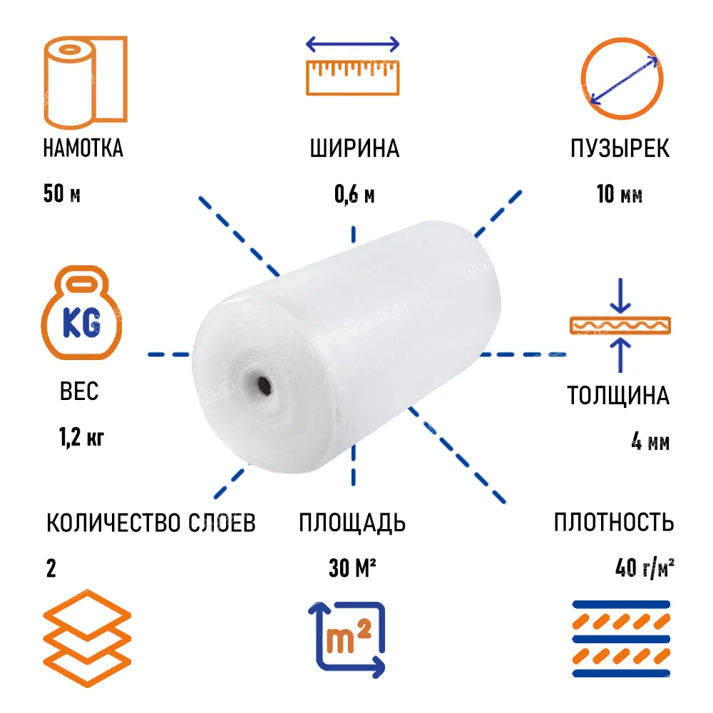 Пленка воздушно пузырчатая "Стандарт" двухслойная, 0.6 х 50 м